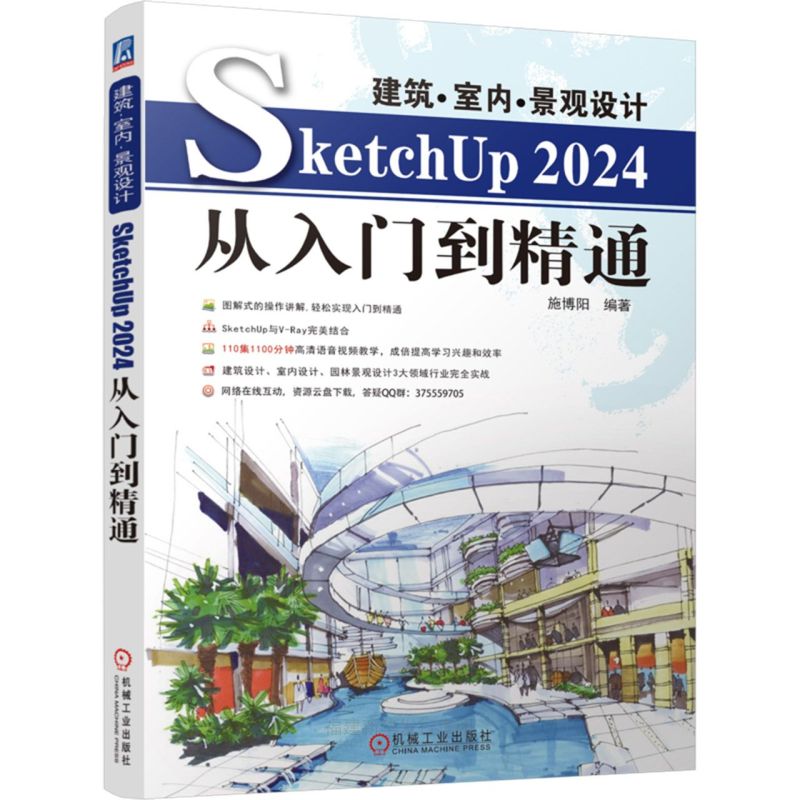 SketchUp2024是直接面向设计过程而开发的三维绘图软件,易学易用,功能强大。本书从实际应用的角度出发,通过大量专业实例,由浅入深、循序渐进地讲解了SketchUp的基本操作,以及使用SketchUp2024进行建筑、室内和景观设计的方法和技巧。
